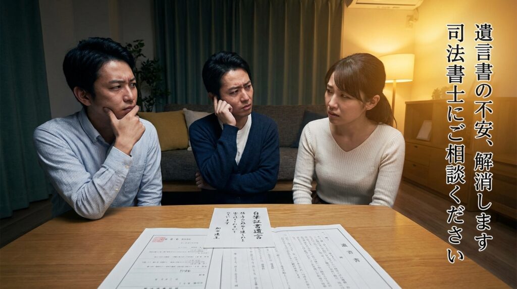 このケースでは、ご自宅以外にも複数の土地や預貯金があり、「主な財産」が具体的に何を指すのかが不明確でした。良かれと思って書いたはずの遺言書が、かえって兄弟の間に深刻な亀裂を生んでしまったのです。